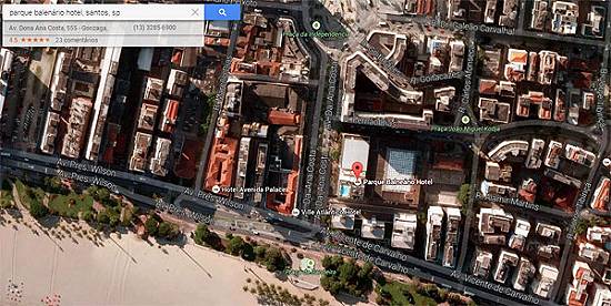 Visão aérea da localização do Parque Balneário Hotel - Google Maps