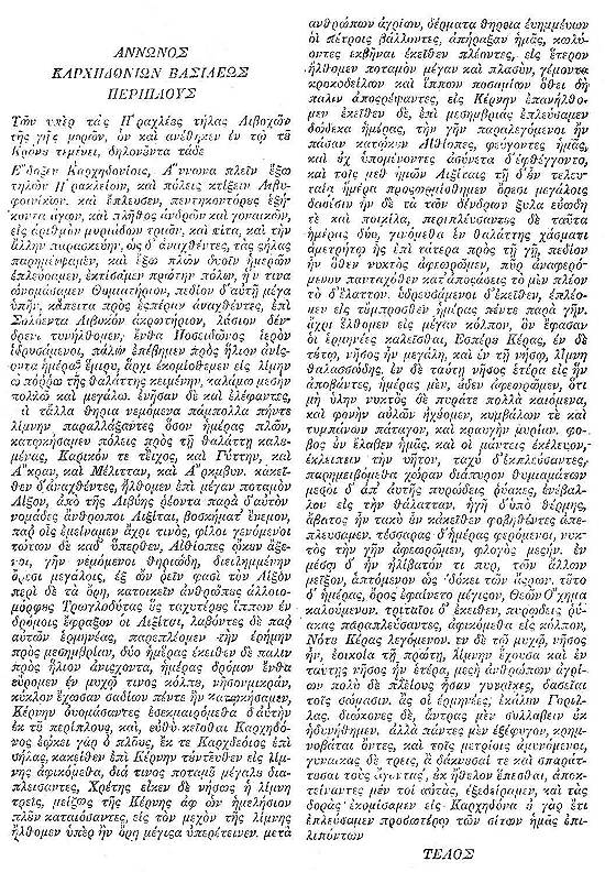 acompanhada de comentários, por ser um monumento preciosíssimo da antiga Geografia e das viagens e descobrimentos dos cartagineses. É o Périplo