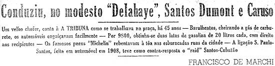 Conduziu, no modesto Delahaye, Santos Dumont e Caruso