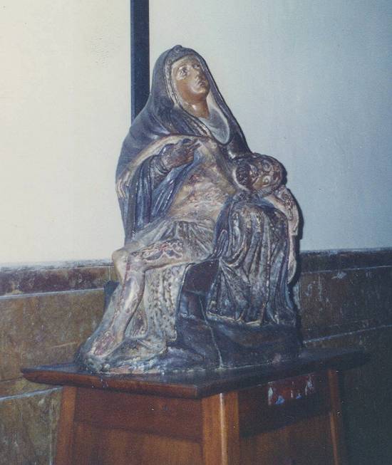 Nossa Senhora da Piedade, existente na Matriz Velha de Santos. Imagem em barro cozido, do século XVI, procedente de Portugal
