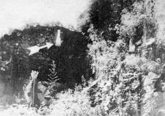 A seta assinala um dos nichos da antiga Capela do Engenho de São Jorge dos Erasmos, em foto de 1967