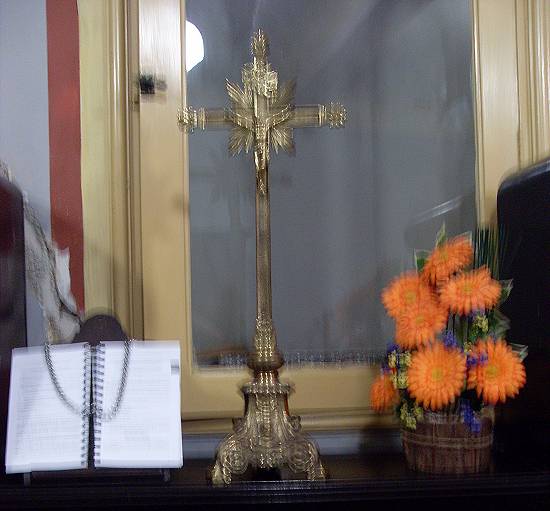 Crucifixo, sobre um arcaz, na sacristia