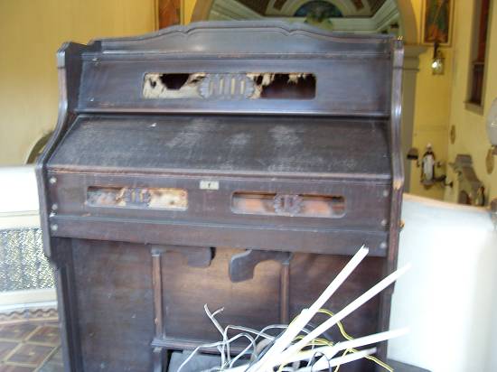 Materiais depositados no piso superior da igreja: órgão danificado, no coral