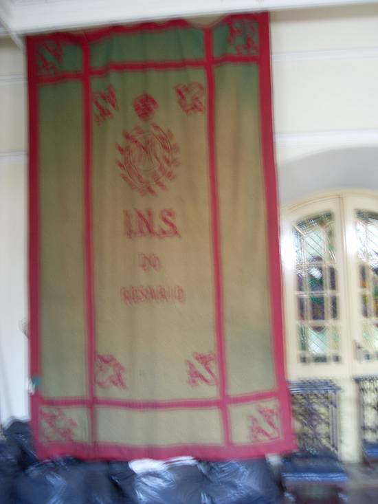 Materiais depositados no piso superior da igreja: estandarte da irmandade de N. S. Rosário
