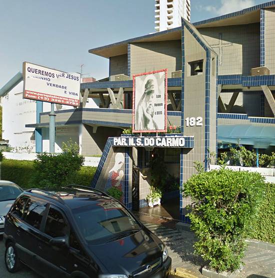 O edifício da Igreja, conforme o previsto, deveria ser construída em frente à Praça Nossa Senhora do Carmo - ao lado do atual.Colégio Objetivo, onde hoje é uma padaria - e ser independente do prédio da Assistência Social da Ponta da Praia.