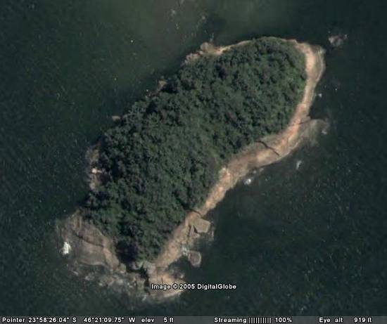 A Ilha Urubuqueçaba, em foto via satélite do Google Earth