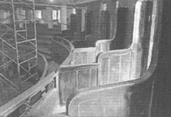 palco, camarins coxias e teto. A Prefeitura embarga a reforma.