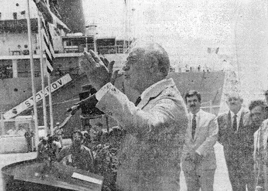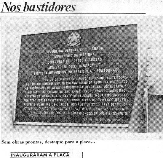 santista, com a presença do governador paulista Franco Montoro, do ministro da Marinha, Henrique Saboya, do presidente da Portobrás, Carlos