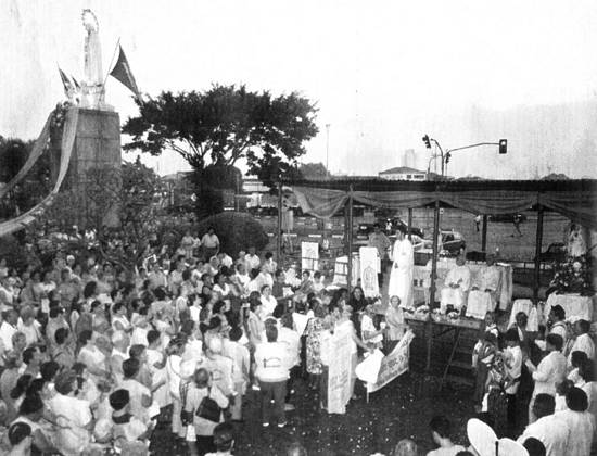 sua imagem, erguida na Praça dos Outeirinhos, nessa mesma data, há 38 anos. O ato foi repetido por 9 anos seguidos. Em 1959, foi interrompido devido a seu idealizador, Padre Roberto Drummond Gonçalves, ter se ausentado da cidade, por motivos de