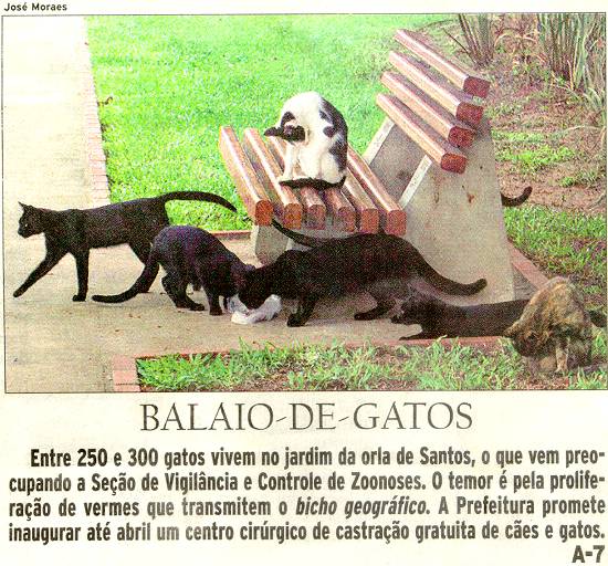 gatos no José Menino, na tentativa de eliminar os ratos. Ele argumentou que preferia optar por um meio natural para extermínio, que traria menos