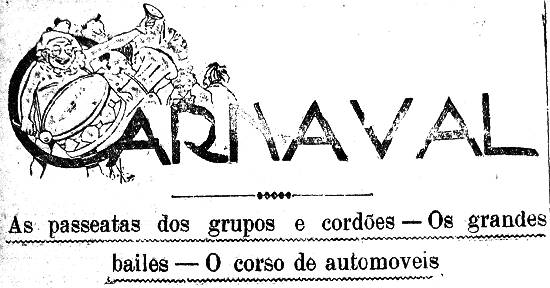 As passeatas dos grupos e cordões - Os grandes bailes - O corso de automóveis