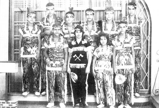 Amigos do Macuco, fantasiados de índios para o baile do Portuários em 1961