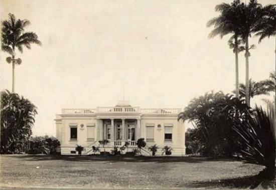 A entrada pela Avenida Conselheiro Nébias, especialmente preparada, apresentava-se imponente e majestosa. Dois leões em tijolo e cimento guardavam um portão bonito, de ferro, sentados no pórtico, dando passagem à avenida de palmeiras imperiais, que impressionavam pelo porte e grandiosidade. Aliás, ali podiam ser vistas várias qualidades das grandes palmeiras do Brasil, numa demonstração da exuberância dos trópicos.