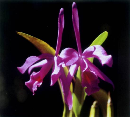 Orquídea amarela (Laelia cannariensis) - pertence à família das Orquidáceas, apresenta folhas lanceoladas e pseudobulbos alongados. Suas flores, delicadamente amarelas, aparecem no meio de maio agrupadas em hastes