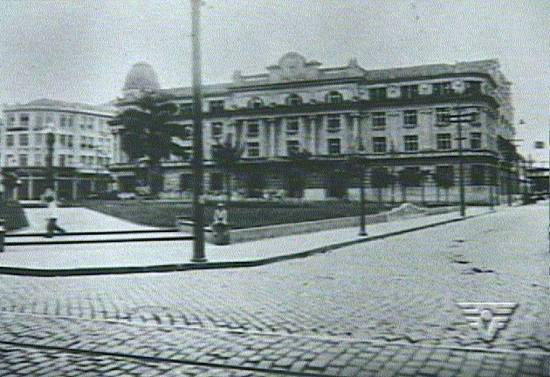 Prédio atual (de 1924) dos Correios na Rua Cidade de Toledo, pouco antes de ser construído à sua frente, nesta praça, o edifício do Paço Municipal, inaugurado em 1939