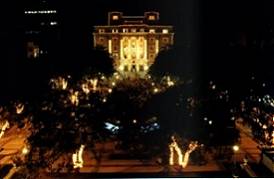 Vista noturna externa, com a Praça Mauá, e o