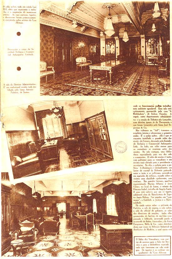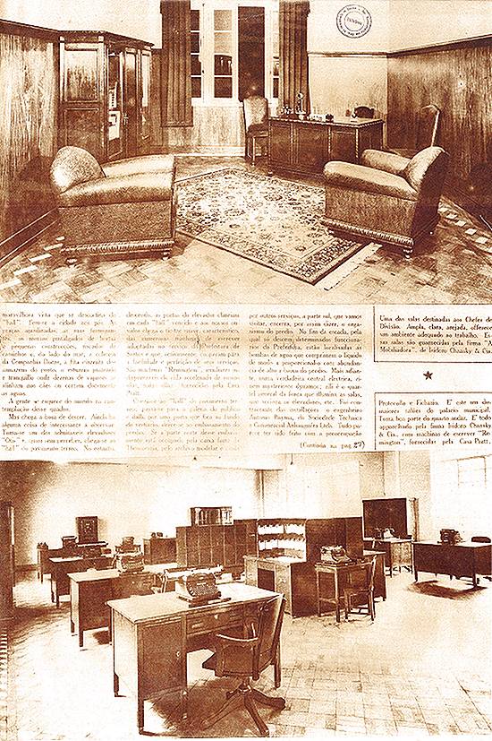 A sala do diretor administrativo. É um confortável recinto todo mobiliado pela firma Antonio Palmieri, de Santos