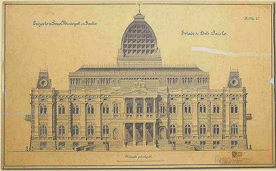 Paço Municipal, reunindo Prefeitura e Câmara, com a inauguração do Palácio José Bonifácio, defronte à Praça Mauá. Vários projetos foram apresentados para a obra, e este foi classificado em segundo