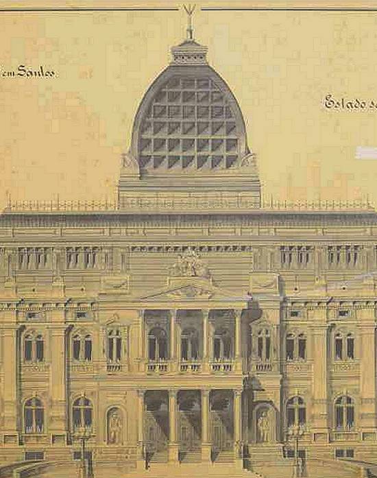 lugar num concurso promovido pela Intendência Municipal de Santos em 1903. Apresentado por Oscar Kleinschimidt, em desenhos a nanquim sobre papel cartão, escala 1:100 (registros nº 785 e 784) considerava a edificação com três pavimentos, torre e porão