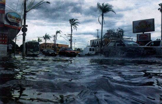 a Capital - com congestionamento recorde (119 quilômetros às 8h30 de ontem), transbordamento dos rios Pinheiros e Tietê, falta de energia elétrica e