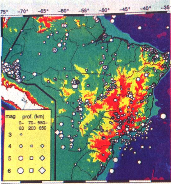 tectônica sul-americana, bem abaixo do Brasil, que ocasionaram os tremores de terra de maior magnitude até hoje.