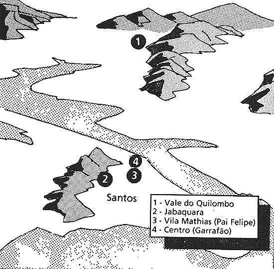 Locais dos quilombos na Baixada Santista: