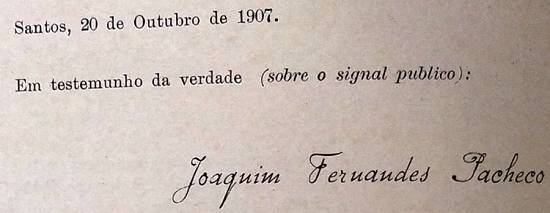 E para que a todo tempo se possa verificar a autenticidade deste solene depósito e encerramento, lavrou-se esta ata, que, lida, vai assinada por todas as pessoas acima mencionadas, com as firmas devidamente reconhecidas pelo 1º tabelião Joaquim Fernandes Pacheco, por quem esta vai escrita.