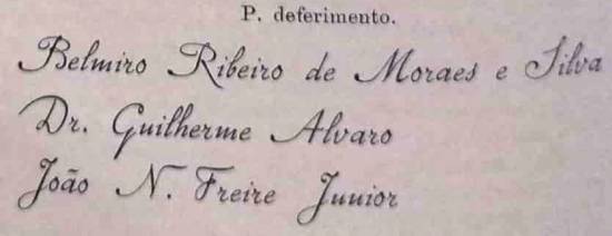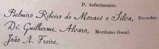 Ilmos. srs. Belmiro Ribeiro de Moraes e Silva, Dr. Guilherme Álvaro e dr. João N. Freire Júnior, muito dignos membros da Comissão da Santa Casa junta às obras do Instituto D. Escolástica Rosa.