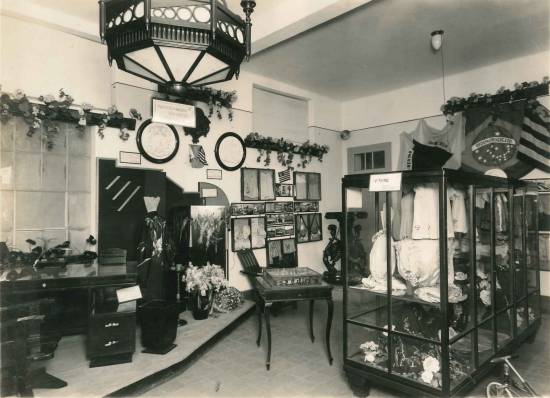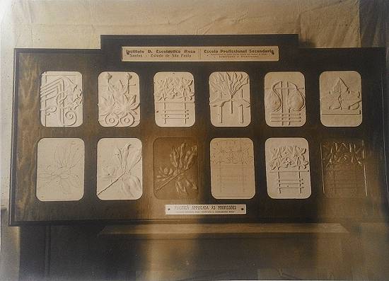 Dependências do Escolástica Rosa com exposição de trabalhos manuais, possivelmente em 1943
