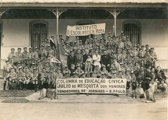 Coluna de Educação Cívica "Júlio de Mesquita" dos menores vendedores de jornais de S. Paulo, na escola