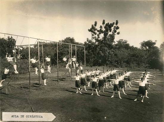Aula de ginástica em dependências da escola