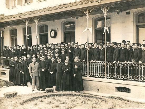 Seminaristas do Seminário Central de São Paulo (Ipiranga), participantes do Congresso Eucarístico de Santos, que ficaram hospedados em dependências do Escolástica Rosa, em 27/7/1941