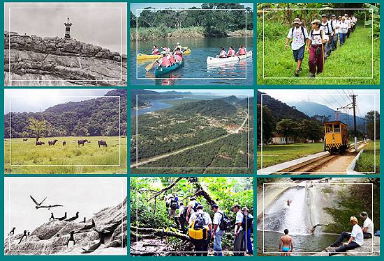 No alto da Serra do Mar, com Santo André e Mogi das Cruzes. Mar adentro, há também lugares que integram a Baía de Santos, como o parque marinho da Laje