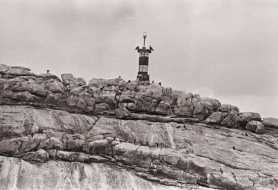 A formação rochosa e o farol, vistos em 1998