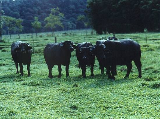 150 cabeças de gado, que produzem boa quantidade de queijo frescal, feito com o leite ordenhado diariamente do rebanho.