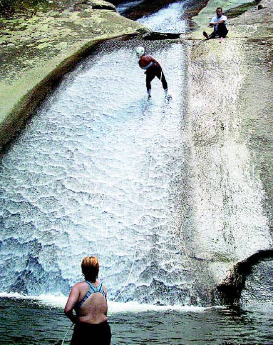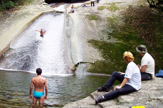 Tobogã na cachoeira do Rio Cabuçu é diversão para os visitantes