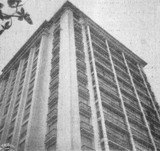 Presidente Wilson, 48, com 16 andares, tendo como construtores Macedo e Vaz Ltda., sob a responsabilidade de Ciro F. Vaz; à Rua Casper Líbero,