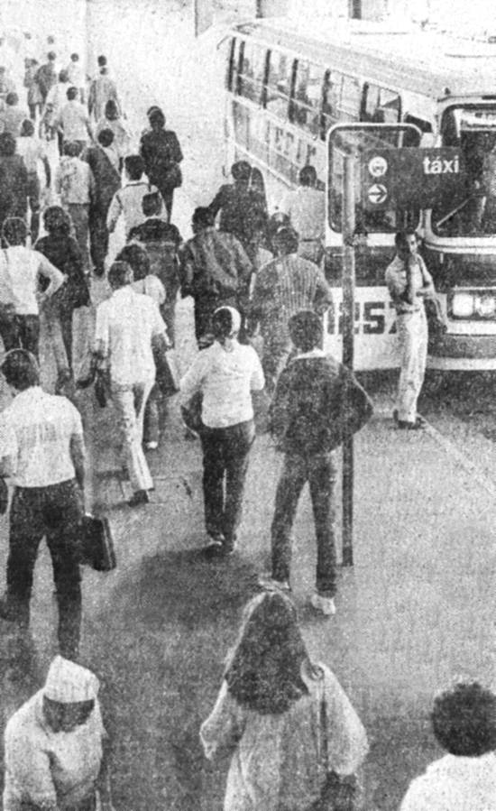 Os passageiros são mensalistas e, como esses dois ônibus afretados, saem outros, bem como peruas, conduzindo grupos de profissionais para empresas,