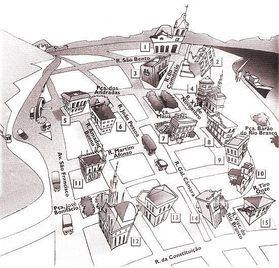 O Outeiro de Santa Catarina e as igrejas do Valongo e do Carmo são algumas das