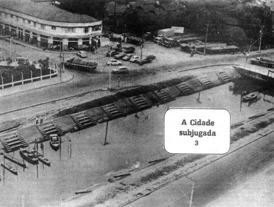 portuária, de antiga promessa, e que um dia - quem sabe quando? - vai soterrar no asfalto o que restou do Golfo, entre o prédio da
