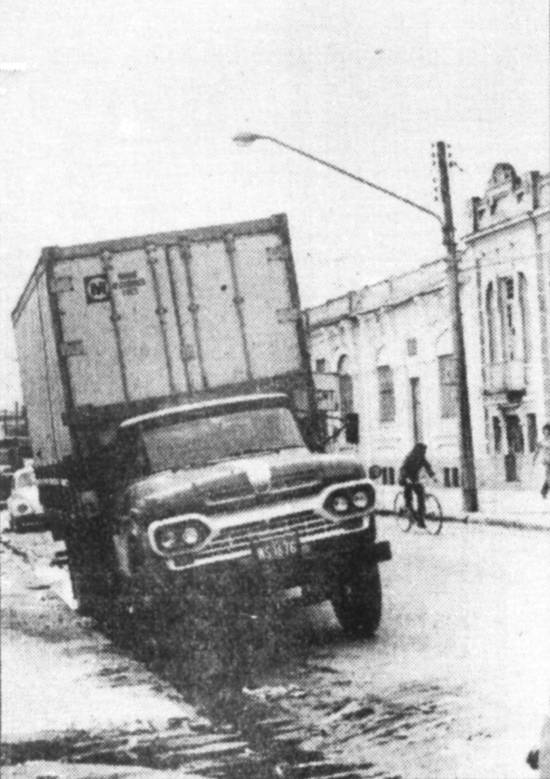 Os trólebus da linha 8 da CSTC, via de regra, encontram o tráfego bloqueado na Rua