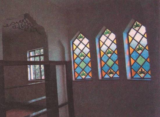 Por dentro, as características de castelo são mantidas. Vitrais coloridos nas janelas,
