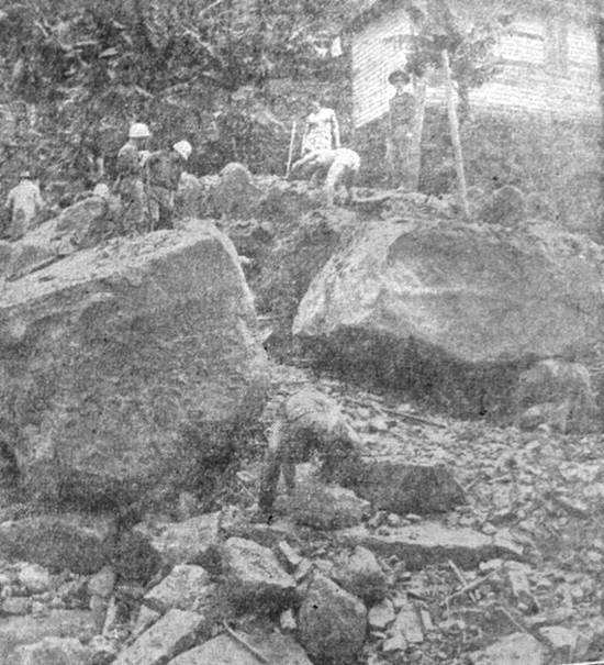 habitações, destruindo-as e sepultando, vivas, vidas inocentes. As fotografias foram colhidas quando se procediam às operações de desentulho. Na