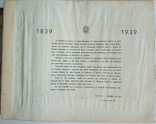 ÁLBUM COMEMORATIVO DO PRIMEIRO CENTENÁRIO DA CIDADE DE SANTOS