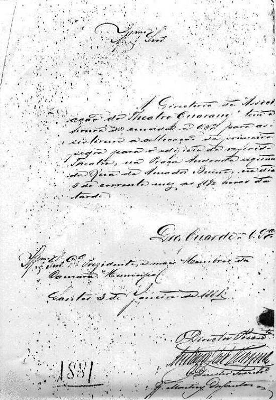 A diretoria da Associação do Theatro Guarany tem a honra de convidar a V. Sas. para assistirem a collocação da primeira pedra para o edifício do referido Theatro, na Praça Andrada esquina da Rua do Amador Bueno, no dia 6 do corrente mez às  4 1/2 horas da tarde.