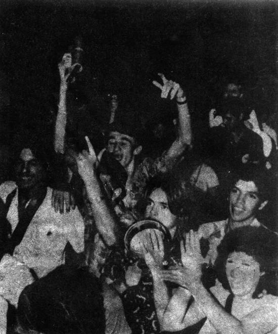 grandes torcidas em apoio aos estudantes competidores. Estes registros são do terceiro festival, realizado em 1974.