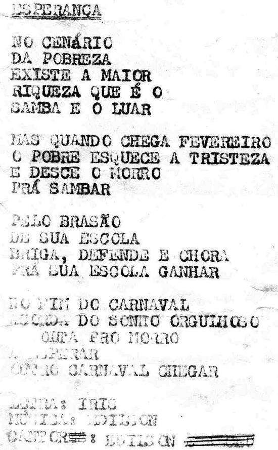 Letras de algumas músicas inscritas, que tiveram cópias mimeografadas distribuídas entre os alunos. Iris Aires,