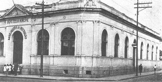 No dia 24 de abril de 1907, o então intendente municipal Francisco Corrêa de Almeida Moraes sancionou a lei nº 258, criando a Academia de Commércio de Santos, a primeira escola profissionalizante do País. No prédio da foto, onde funcionava o Grupo Escolar Auxiliadora da Instrução, na Rua 7 de Setembro, esquina com a Rua Braz Cubas, também foi instalada a Academia. O edifício foi demolido nos anos 1950