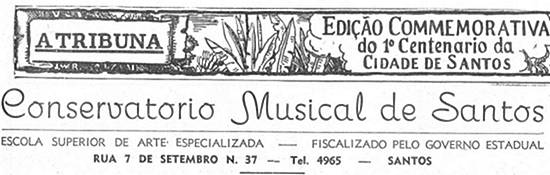 Em 1929, o Conservatório Musical de Santos foi registrado na Diretoria de Ensino (São