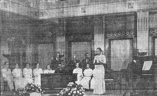 Um aspecto do concerto das diplomadas pelo Conservatório Musical de Santos, em 1937.